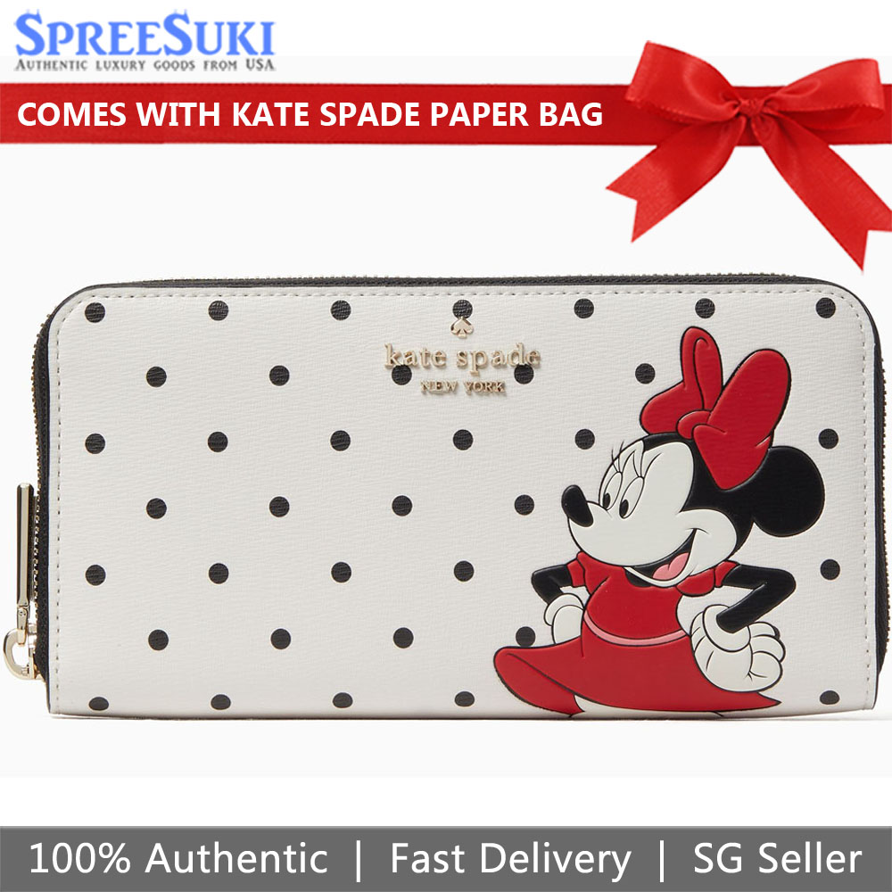 Kate Spade Wallet In Gift Box Long Wallet Disney X Kate Spade New York Minnie Mouse L Off White Black # K4759