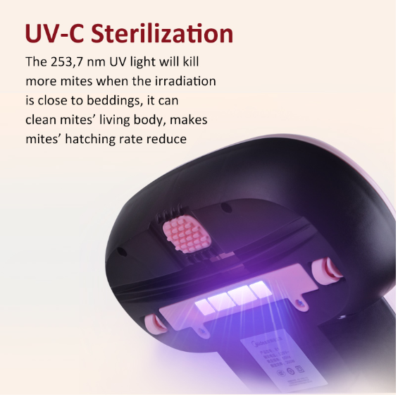 • The 253,7 nm UV light will kill more mites when the irradiation is close to beddings, it can clean mites' living body, makes mites' hatching rate reduce