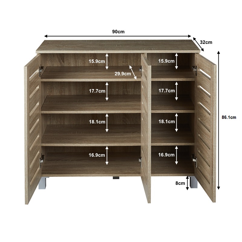 3 Ventilator Doors, 4 Tier Shoe Storage