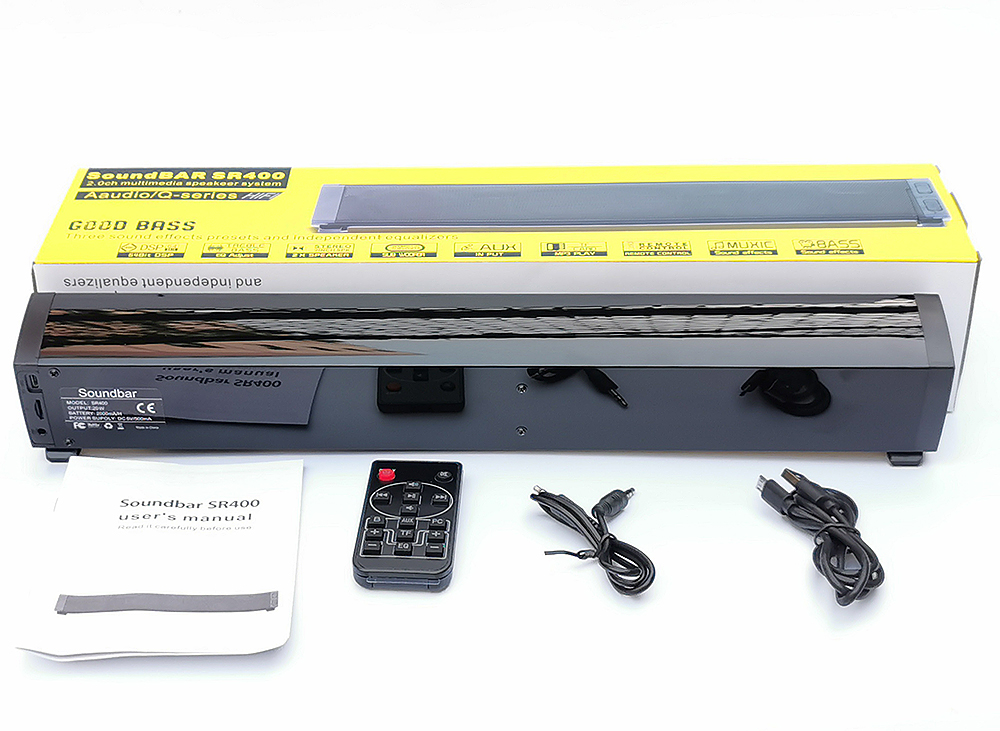 SR400 20W Bluetooth Soundbars Speaker with 2x52mm Horns Stereo TF Subwoofer Column Support 2 Sound Effects QE Treble/Bass Adjust