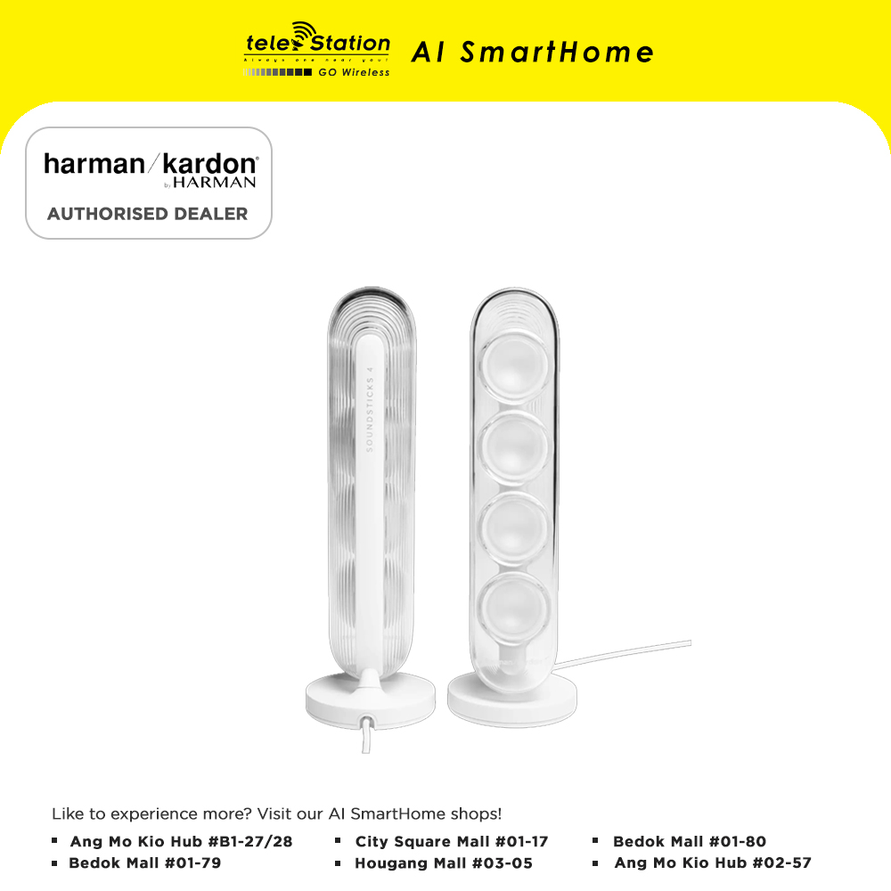 Welcome a timeless icon into your home with Harman KardonSoundSticks 4. Extraordinary sound meets sculptural design in this one-of-a-kind audio masterpiece from the legendary Harman Kardon brand. Bring harmony into your living space with unparalleled sound quality and beautiful transparent materials. Highly regarded as a true work of art by passionate audio enthusiasts around the globe, Harman Kardon SoundSticks 4 is a stunning system that fills your space with vibrant treble and incredible bass. Transform the look and sound of your life and experience music in a new, exceptional way.