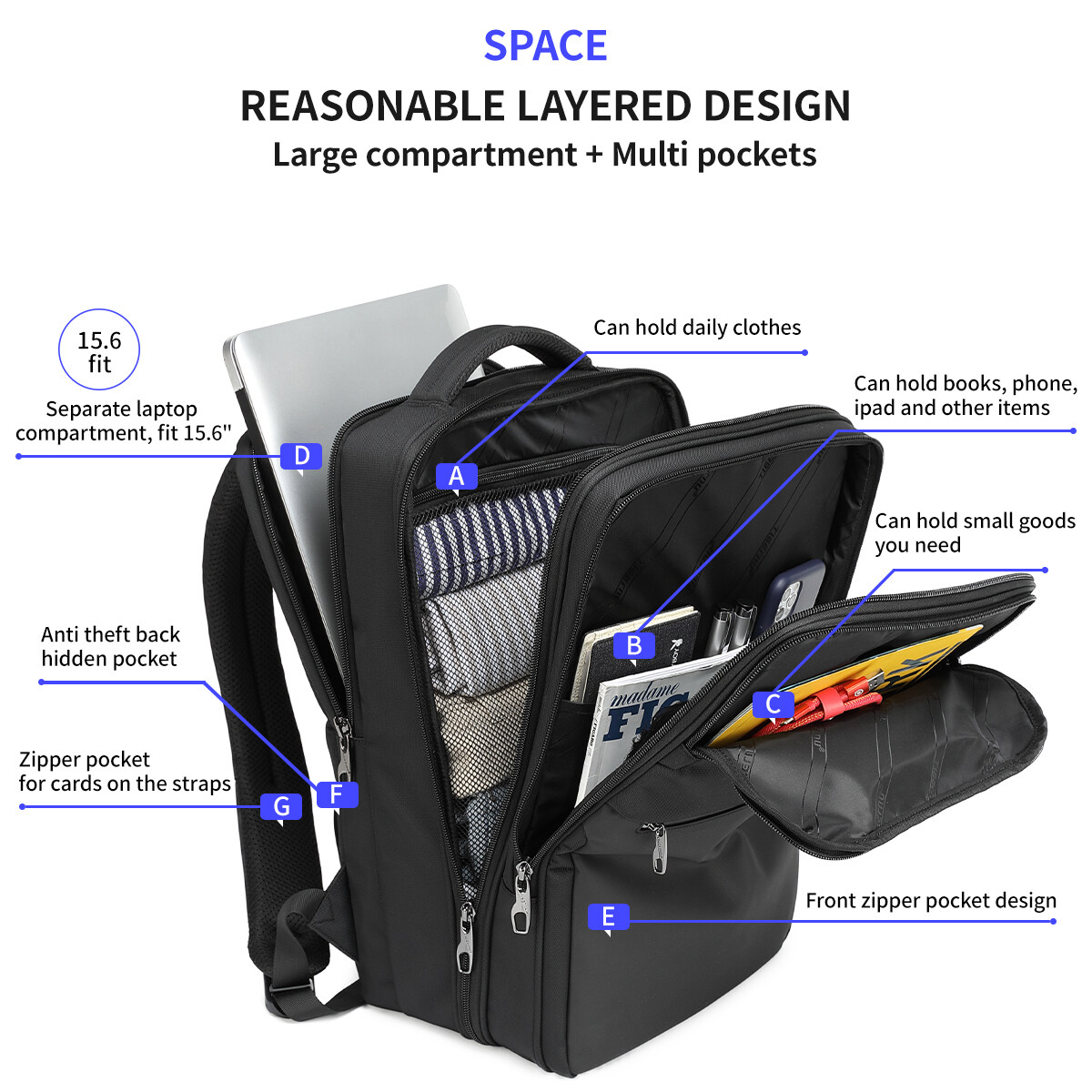 Features: 1. TPU splashproof material 2. Ergonomic design 3. Large capacity - Multiple pockets 4. Luggage strap 5. Reflective stripe