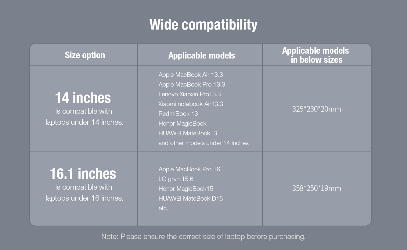 Model Number: Compatible with laptops under 14inches / 16 inches