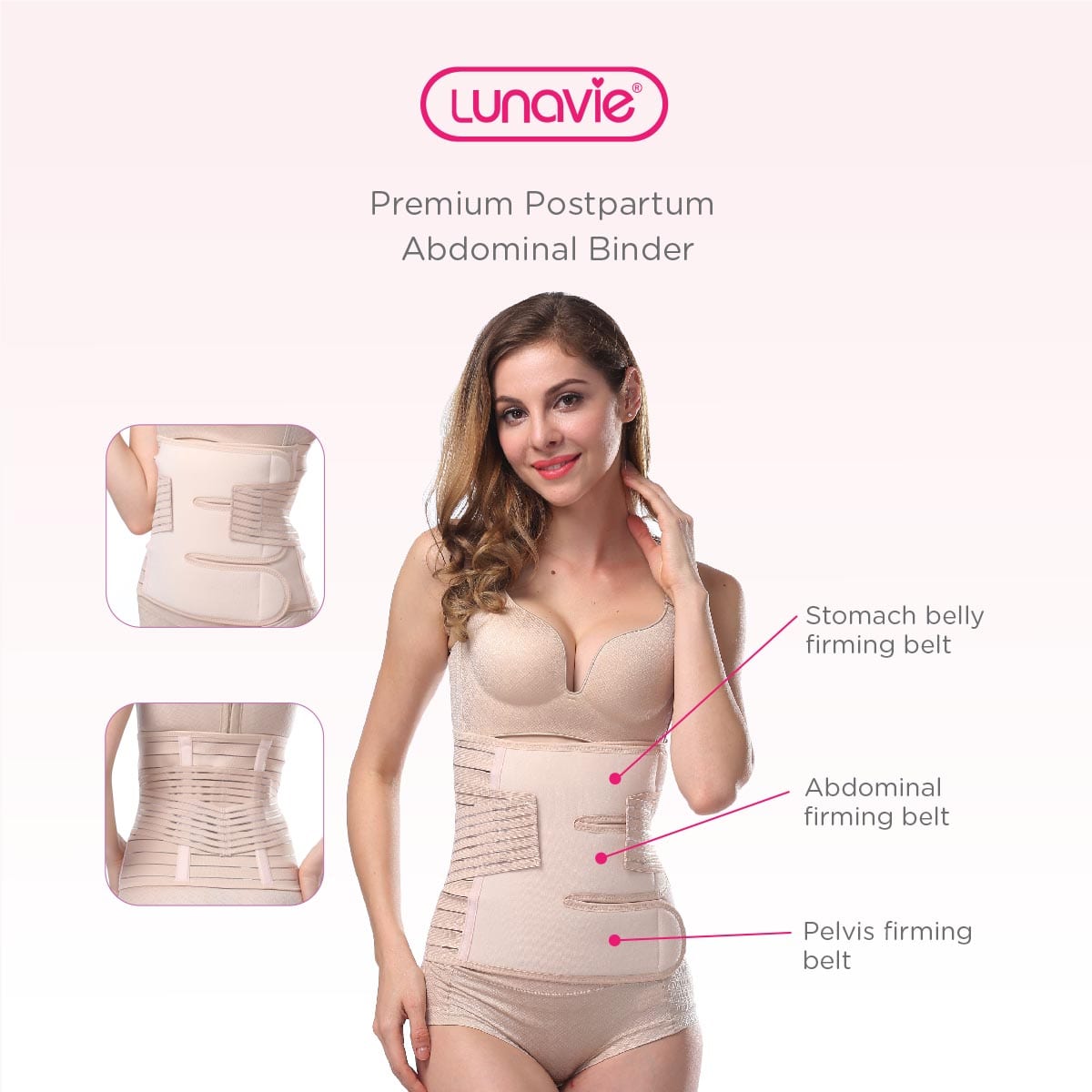 Lunavie Premium PostpartumAbdominal Bindershrinks and firms your belly & waist instantly. So you look and feel better after delivery!