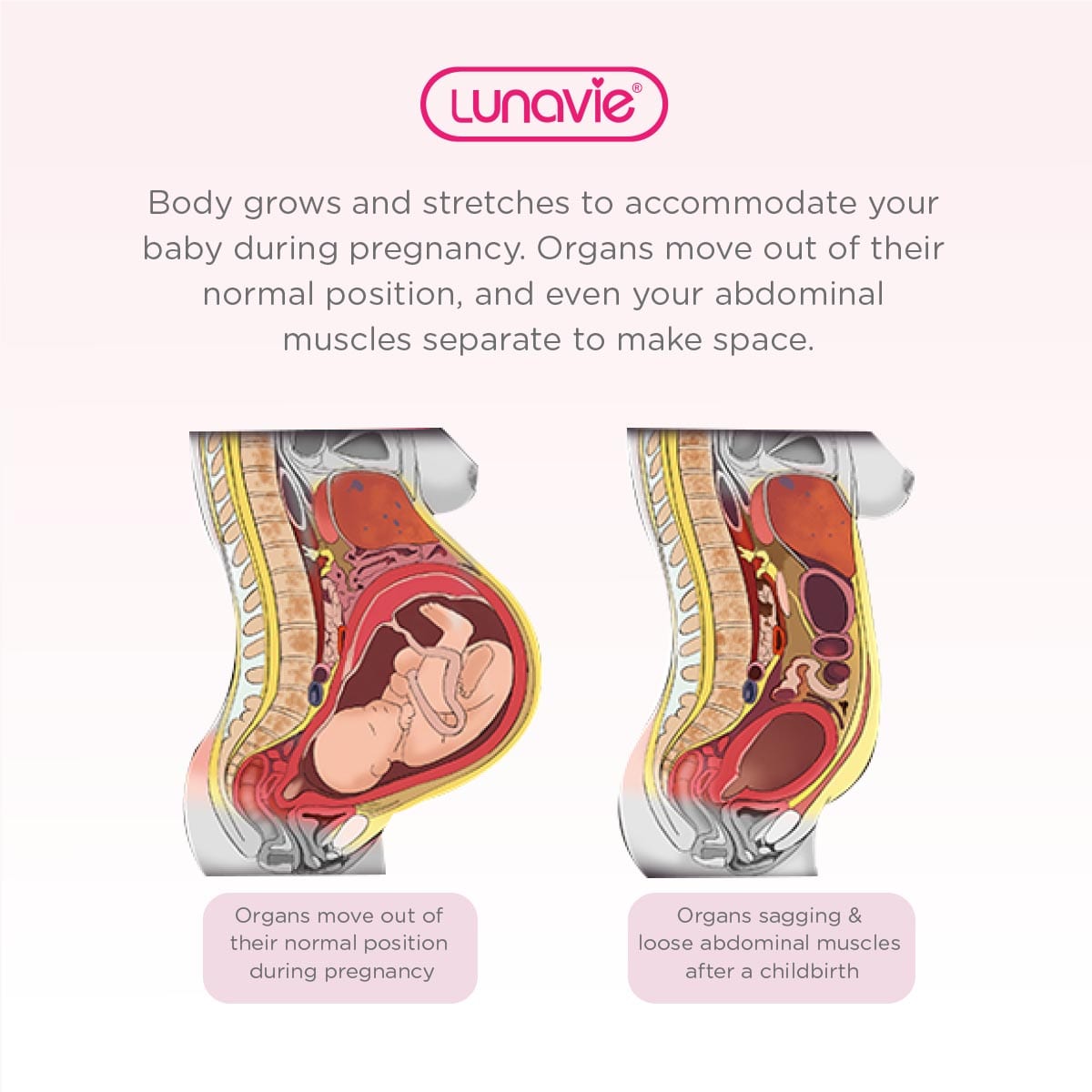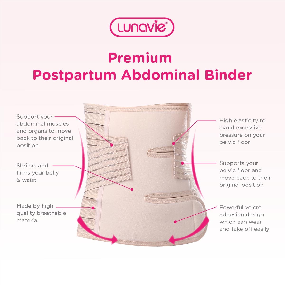 Lunavie Premium PostpartumAbdominal Bindershrinks and firms your belly & waist instantly. So you look and feel better after delivery!