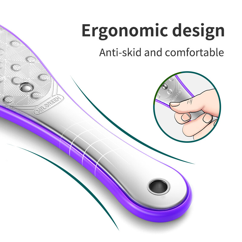 • Mr-2205 series foot file1. Double sided rough and fine surface design, more comprehensive foot care tools.Rough side: suitable for dealing with thick and hard calluses on sole and heel.Fine side: suitable for dealing with aging cuticles on the surface of feet and soles.2. Integrated molding technology, no burr on file surface, even and fine, durable.3. Medical grade stainless steel, nickel plating process, durable and anti-rust.