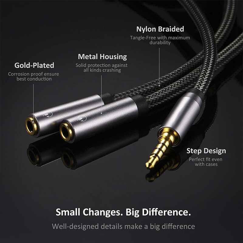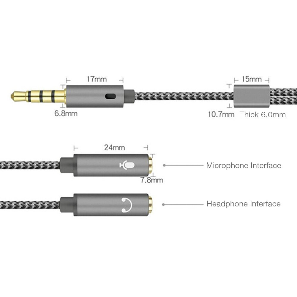 BlueWow HY191 3.5mm Audio Headset Splitter Headphone Mic Y Adapter Cable Male to Separate Stereo Aux Female Jack & Microphone Female Jack Compatible for PS4 Xbox Laptop Phone PC Gaming Headset