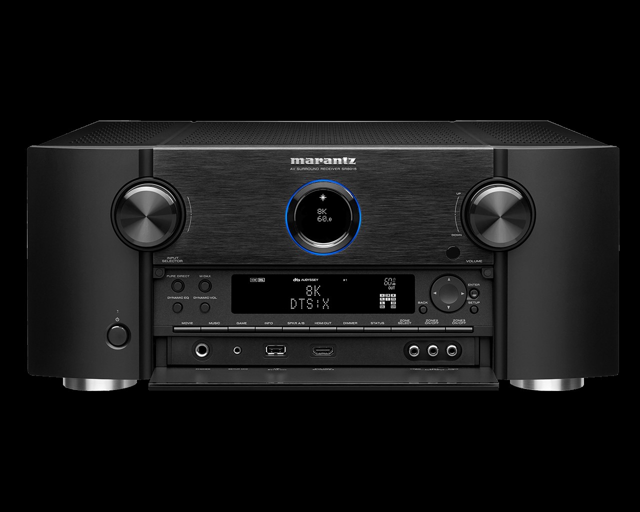 • HDMI 2.1 audio/video switching: 8 in (includes 1 front-panel input), 3 out