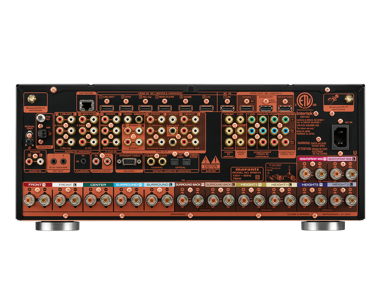 • HDMI 2.1 audio/video switching: 8 in (includes 1 front-panel input), 3 out