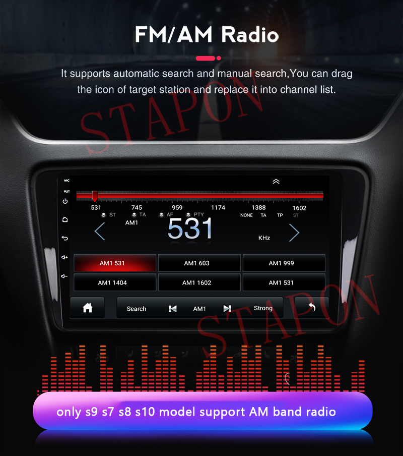 • -Support Radio tuner:FM 87.5 - 108MHz AM