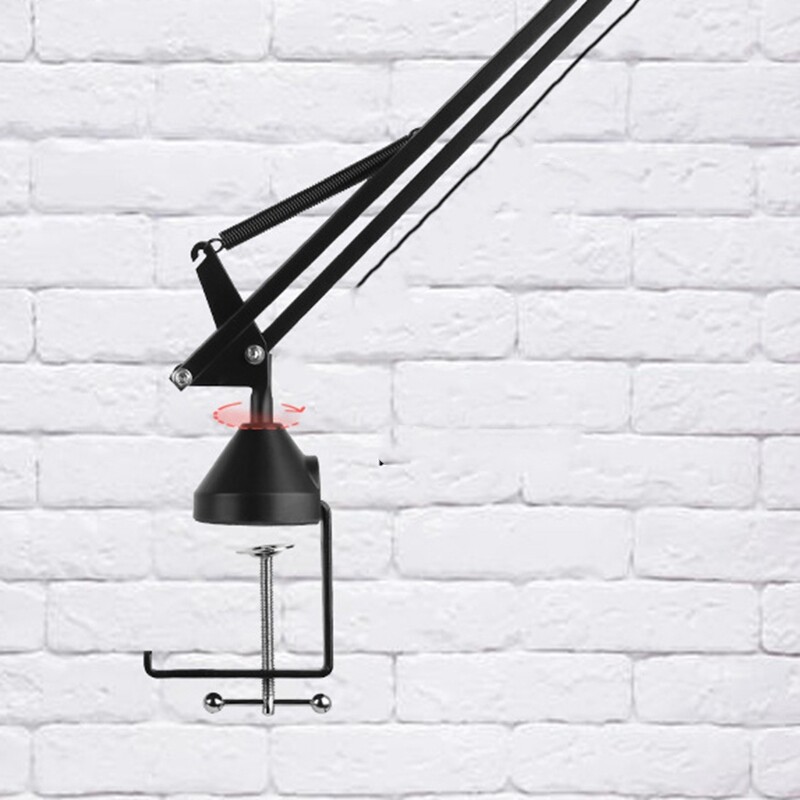A specially designed table mounting clamp for universal microphone suspension boom scissor arm stand. Heavy-duty metal clip base provides a sturdy and reliable way to hold your microphone stand. Soft foam padding protection at the contact point with table considerately protects your desktop surface from any scratches. Adjustable Table Mounting Clamp is designed to securely mount your microphone stand to table top or other flat surface using an adjustable positioning screw.