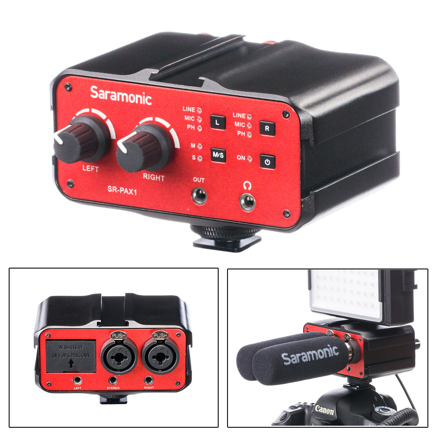 NEW Release- SR-PAX1 TWO-CHANNEL AUDIO MIXER WITH PHANTOM POWERThe Saramonic SR-PAX1 is a two-channel audio mixer with phantom power, specially designed for mirrorless digital camera, DSLR camera and camcorder with a microphone jack. It is ideal for recording professional quality audio from two sources and mixing them into your camera.With two sets of inputs, the SR-PAX1 accepts signals from a wide variety of mic or line level sources such as balanced XLR microphones, wireless microphones, guitars, or any musical instruments with a 6.35mm connector. The 3.5mm inputs are also ideal for connecting audio devices with a 3.5mm output such as a smartphone or an MP3 player. The input levels of each channel can be easily controlled with the dual control knobs. A phone jack allows you to monitor the audio in real time. The SR-PAX1 makes your recording work much easier.