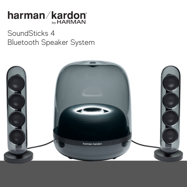 Welcome a timeless icon into your home with Harman Kardon SoundSticks 4. Extraordinary sound meets sculptural design in this one-of-a-kind audio masterpiece from the legendary Harman Kardon brand. Bring harmony into your living space with unparalleled sound quality and beautiful transparent materials. Highly regarded as a true work of art by passionate audio enthusiasts around the globe, Harman Kardon SoundSticks 4 is a stunning system that fills your space with vibrant treble and incredible bass. Transform the look and sound of your life and experience music in a new, exceptional way.