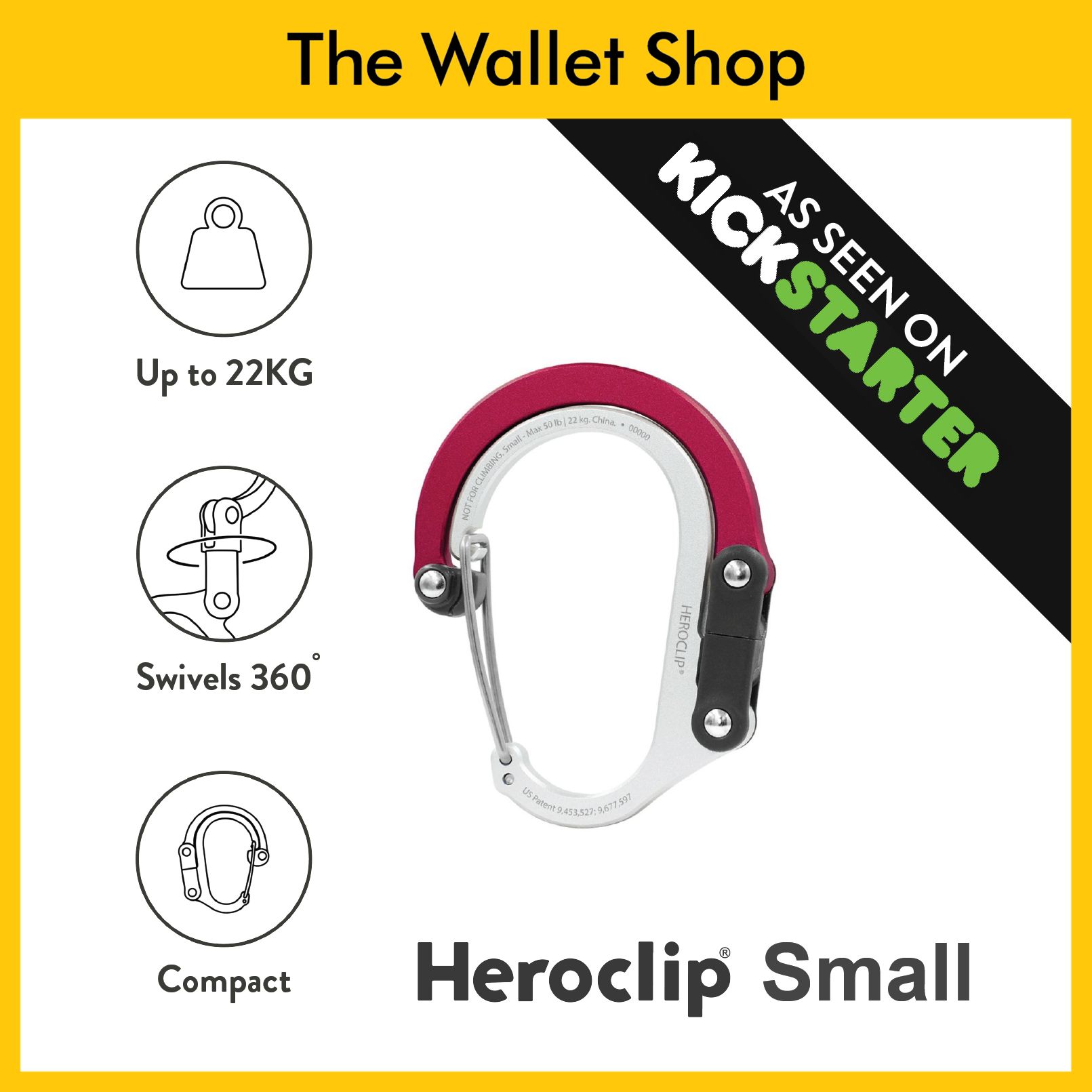 Each Heroclip holds up to 27kg. The hook comes with a secure rubber end-grip.
