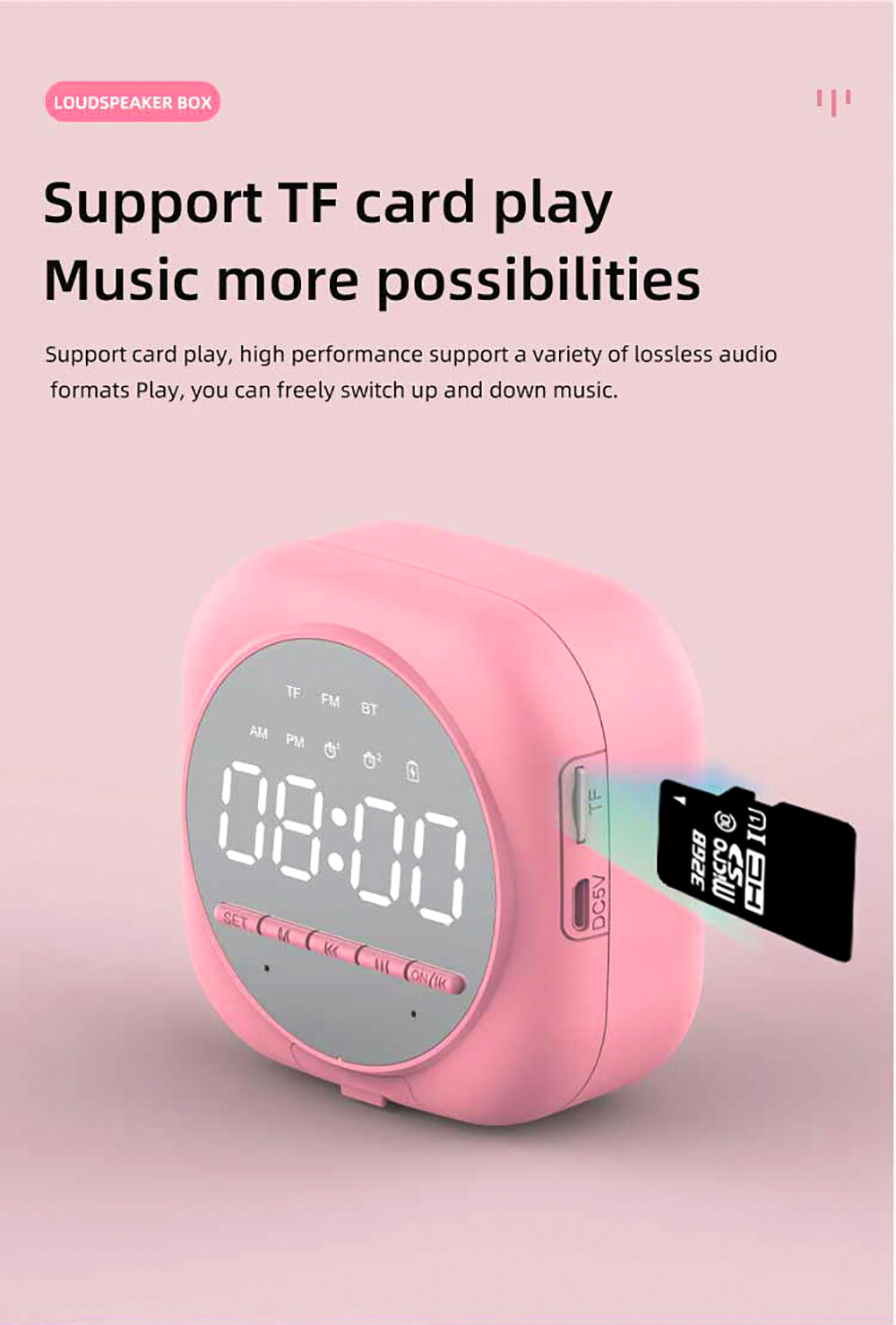 4.With a TF card interface built-in 1400mAh lithium battery, providing up to 10 hours of work time perfect for home, parties, picnics, travel, etc.