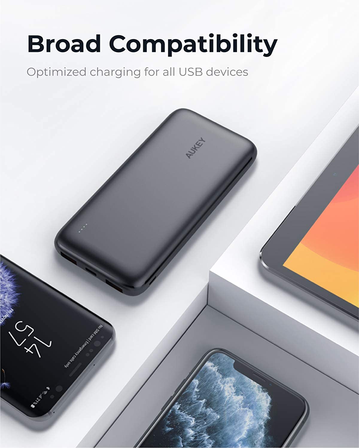 Slim yet Powerful: This travel-friendly portable battery will charge an iPhone 11 Pro 2.6 times, iPad Air (2019) 0.9 times, or Samsung Galaxy Note10+ 1.8 times.
