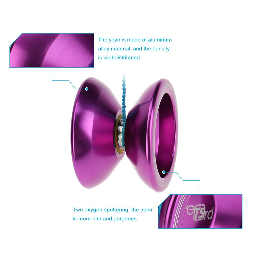 The magic yoyo is not only for daily entertainment, but also for acrobatic performance with most entertaining fancy. Smooth silicon recycle system and adjustable gap system can satisfy different players. This magic yoyo is the best for primary and intermediate players. Also, it makes a great gift for your kids, friends, families.Features:The magic yoyo can cultivate the imagination, creativity, rapid reactionability, motor skills and eye-hand coordination.Adopt CNC lathe to precision processing, the increased density delivers greater momentum and increased challenge.8 ball KK bearing, the magic yoyo will keep balance when in rotation, and it runs in a fast speed.Anodize surface, the laser engraving technology is used in design the trademark and the surface color uses anodize technique, which makes it has fresh color and good stereoscopic effects. It won't lose color when knocked against. Specifications:Material: AluminumPattern: ButterflyColor: Red, Purple, Lake Blue(optional)Age: 8 +Diameter: 54 mmWidth: 40 mmGap Width: 4.72 mmBearing: Concave bearing Bearing Size: 6.35 mm * 12.7 mm * 4.76 mm(C)Axle: M4 * 10 mmString Trick: 1A, 3A, 5AString Length: 110 cm / 43.31 inPackage Size: 9 * 4.5 * 6.2 cm / 3.5 * 1.8 * 2.4Package Weight: 85 g / 3 oz
