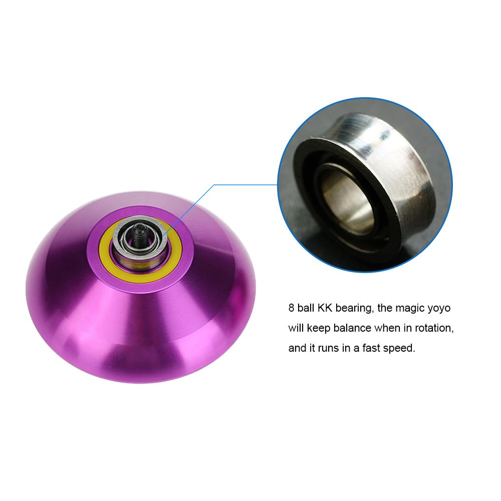 The magic yoyo is not only for daily entertainment, but also for acrobatic performance with most entertaining fancy. Smooth silicon recycle system and adjustable gap system can satisfy different players. This magic yoyo is the best for primary and intermediate players. Also, it makes a great gift for your kids, friends, families.Features:The magic yoyo can cultivate the imagination, creativity, rapid reactionability, motor skills and eye-hand coordination.Adopt CNC lathe to precision processing, the increased density delivers greater momentum and increased challenge.8 ball KK bearing, the magic yoyo will keep balance when in rotation, and it runs in a fast speed.Anodize surface, the laser engraving technology is used in design the trademark and the surface color uses anodize technique, which makes it has fresh color and good stereoscopic effects. It won't lose color when knocked against. Specifications:Material: AluminumPattern: ButterflyColor: Red, Purple, Lake Blue(optional)Age: 8 +Diameter: 54 mmWidth: 40 mmGap Width: 4.72 mmBearing: Concave bearing Bearing Size: 6.35 mm * 12.7 mm * 4.76 mm(C)Axle: M4 * 10 mmString Trick: 1A, 3A, 5AString Length: 110 cm / 43.31 inPackage Size: 9 * 4.5 * 6.2 cm / 3.5 * 1.8 * 2.4Package Weight: 85 g / 3 oz