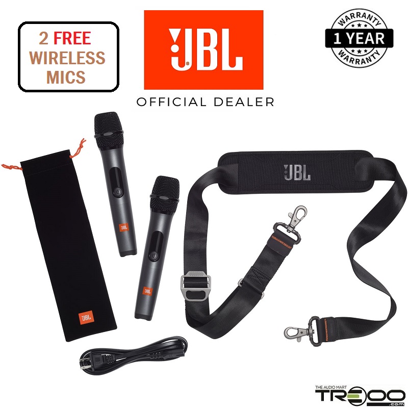 From beach parties to festivals, the JBL PartyBox On-The-Go lets you see, hear and feel the beat. Turn it up loud with 100 watts of powerful JBL Pro Sound, synched to a dazzling light show. Access your favorite tunes with Bluetooth, USB, AUX and TWS (True Wireless Stereo) connectivity, grab a friend and sing your hearts out with the JBL wireless mics, or use the instrument input to play along. With a bottle opener, padded shoulder strap, rechargeable battery and IPX4 splash-proof protection, the JBL PartyBox On-The-Go has everything you need to get the party started—and take it with you.