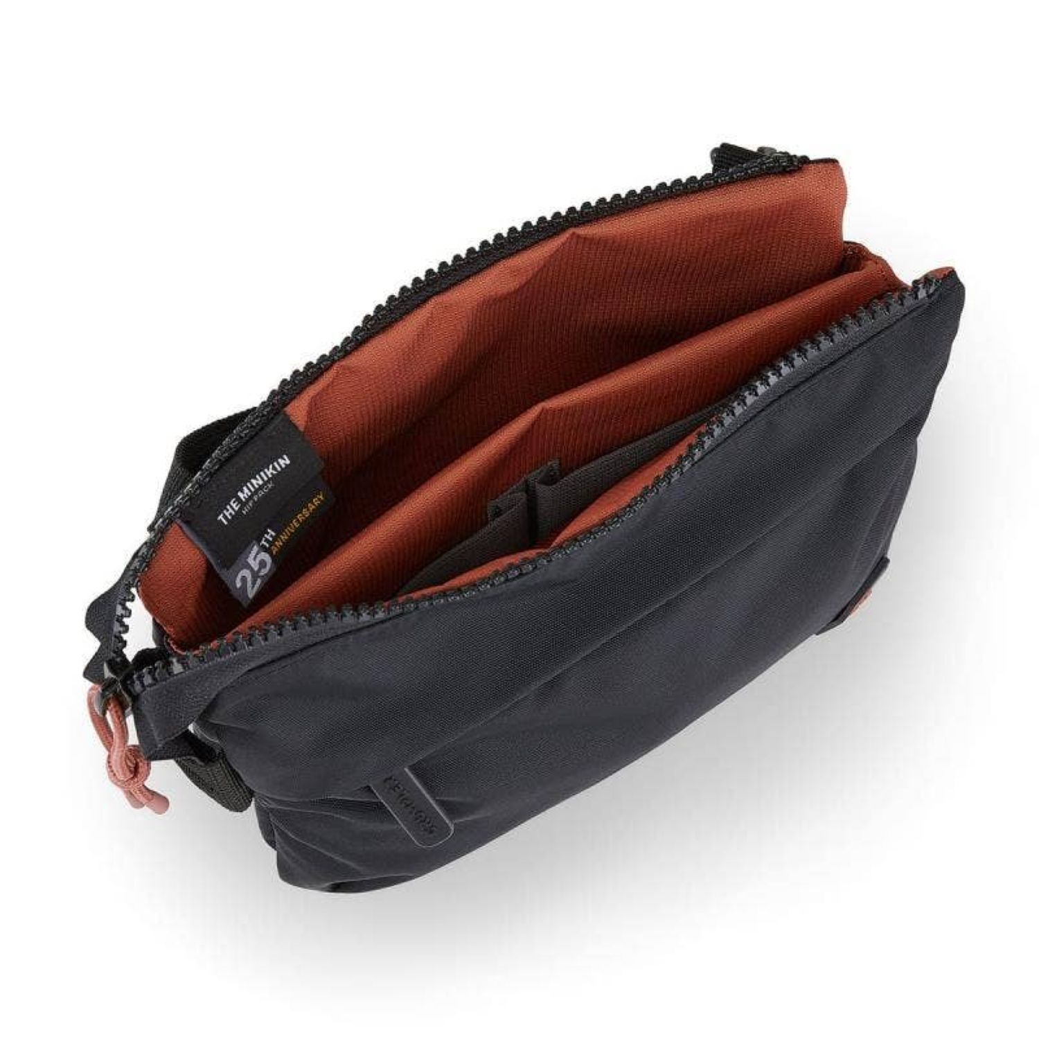 Why should packing light mean boring and uninspiring bags? The Minikin is here to buck that trend. This super durable cross-body hip bag has a unique double pouch construction with a middle divider separating two separate compartments. The front pouch has two internal slip pockets and the rear is one simple pouch. The front external zippered pocket is perfect for phones, keys or coins and the rear Velcro slip pocket is great for quickly stashing papers or receipts. Couple all this with the coloured Vislon zips, 400D weather resistant nylon and adjustable and stow-able shoulder strap and you have a little bag ready for anything.