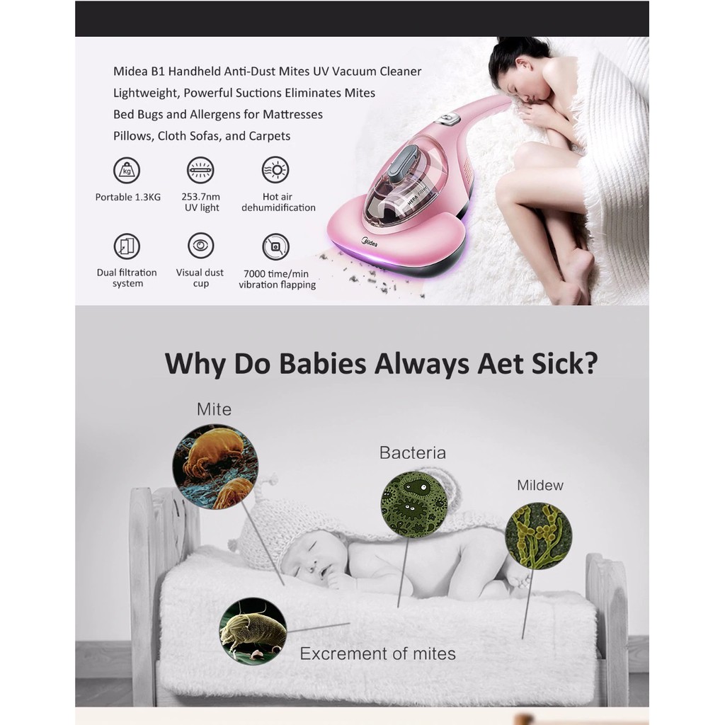 • The dustmite vacuum cleaner is lightweight with only 1.3KG, it is easy to use and save effort