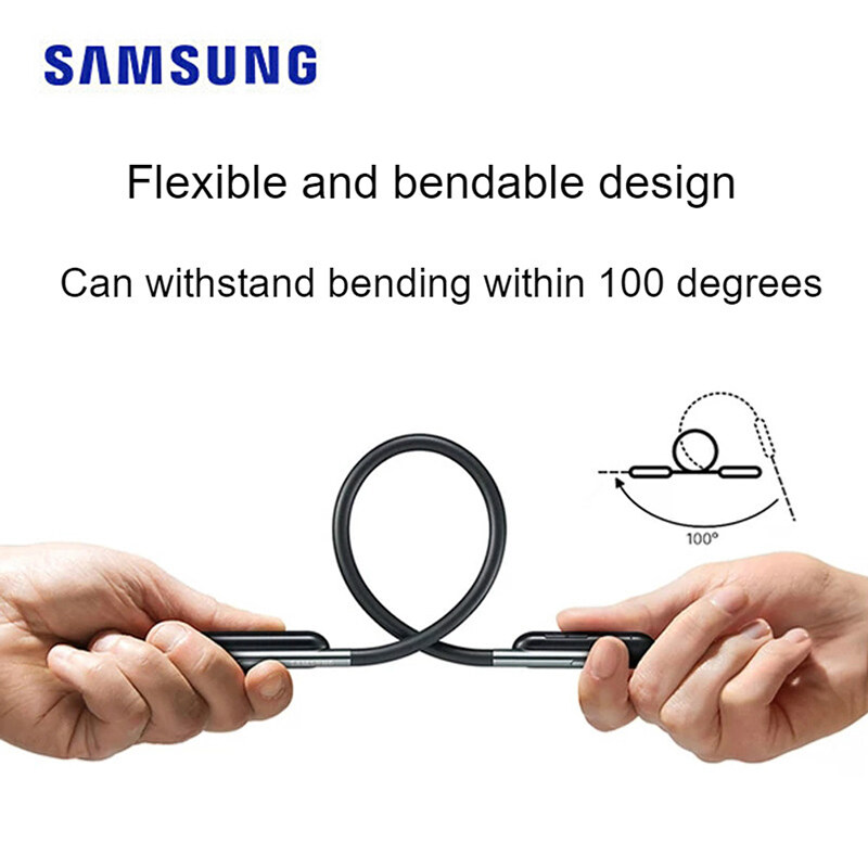 The neckband-type U Flex headphones boast an incredibly flexible design and excellent portability. With its flexible neckband adjustment, Samsung’s U Flex Headphones are designed to fit perfectly and withstand harsh conditions so they keep working wherever you need them, whether at the gym, commuting to work or out jogging. *To avoid product disfiguration and malfunction the neckband should not be bent more than 100 degrees.*Bending the neckband might cause the foam in the band part to change shape, and excessive bending of neckband could cause a product malfunction.