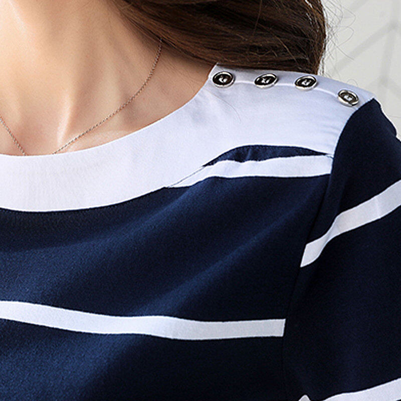 • INWPLLR Fashion T-shirt Women Tops Summer White And Blue Striped T-Shirts New Korean Short Sleeve O-neck Ladies Tshirt Large Size
