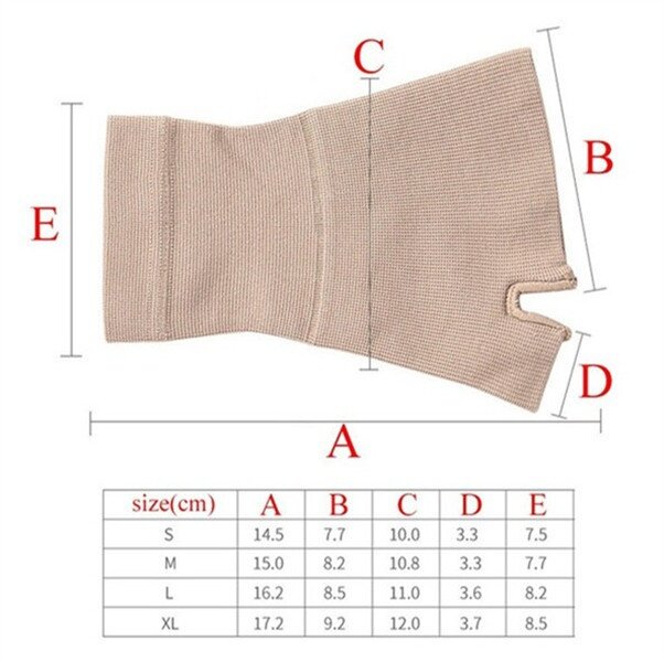 Specifications: Item Name: Tenosynovitis Wrist Gloves Material: 80% nylon+20% spandex Gender: Unisex Age: Adults Color: Beige, Black Size: S, M, L, XL (See the picture for the specific size) Suitable season: all year