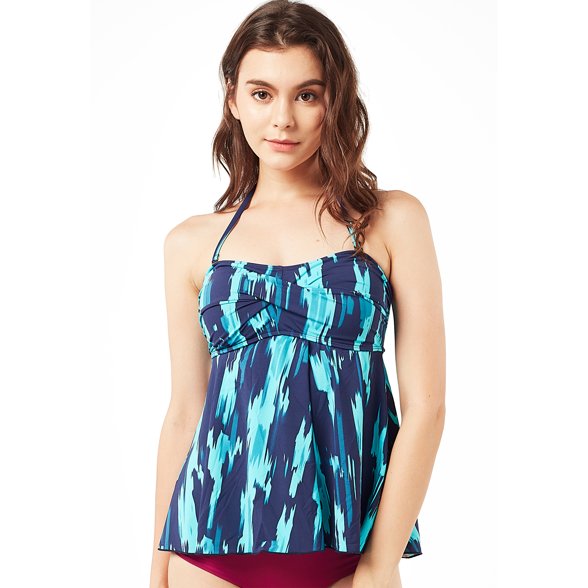 Made in our creamy soft special blend of spandex and nylon, this tankini top is suitable even for pregnant ladies. Featuring a trendy look, it's a flattering piece that doesn't show too much skin.