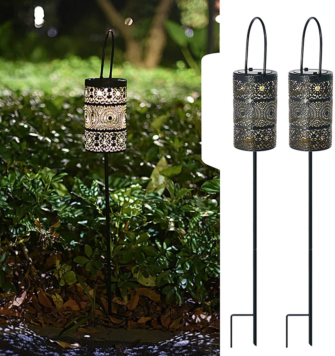 • 【BEAUTIFUL MOOD LIGHTING】 This lovely solar lantern is designed to embellish your outdoor space. With the night coming, it casts a white light that forms a pretty shadow around it and creates the perfect amount of ambient mood lighting. These are such a wonderful decoration to your garden, trees, courtyard, deck, patio etc. It has two ways to use it: grounding method and portable/hanging mode.
