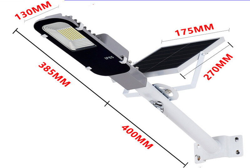 Wattage: 100W/200W Penilaian kalis air: IP65 Sudut penderiaan: 120 darjah Suhu warna: 7500K LED QTY: 122LED 5730MD Masa pencahayaan caj penuh: 12h Mod: kawalan cahaya + kawalan masa Panel Solar: 8W/6V polikristalin panel solar