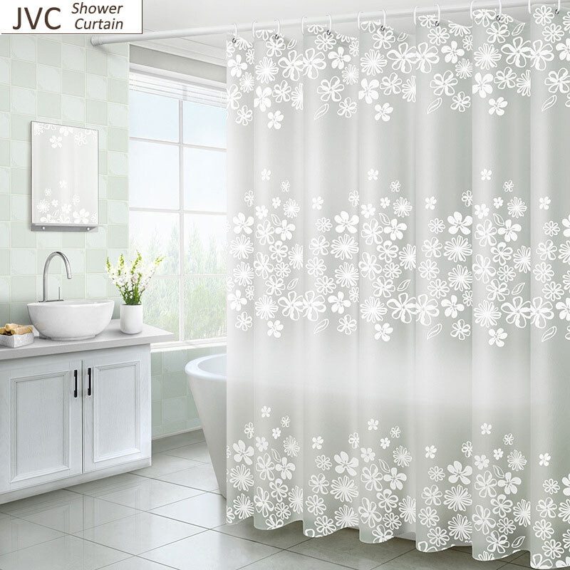 Translucen Shower Curtain with Hooks PEVA Waterproof Thickened Blooming White Flowers Bath Curtains For Bathroom Bathtub