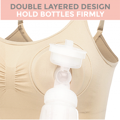 The Prolacta Hands Free Seamless Pumping Bra has double the support to hold your breast pump bottles with its cross-layered design. It is padding-free to minimize discomfort and suitable for mothers experiencing breast engorgement. Features & Benefits: Hands-Free feature. For breastfeeding, pumping or both together. Easy to clip on/off while embracing your baby with another hand.Double layered insert to hold bottles firmly, securely.Fully adjustable back panel design to fit your changing shapes.Wire-free and microfiber fabric ensure maximum comfort. Abundance of side coverage minimizes unpleasant bulges. Care instructions: Hand wash or machine wash. Cold gentle cycle with like colors. Do not tumble dry. Do not iron. Do not bleach. Material: 90% Polyamide, 10% Elastane, exclusive of trims.