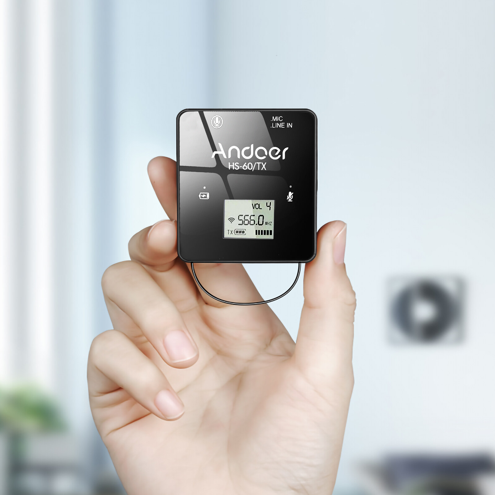 UHF Wireless Microphone System:Including mini size transmitter and receiver, adopts 566-594MHz frequency band and with 57 selectable UHF channels. 1 transmitter triggered by 1 receiver, avoid signal interference.