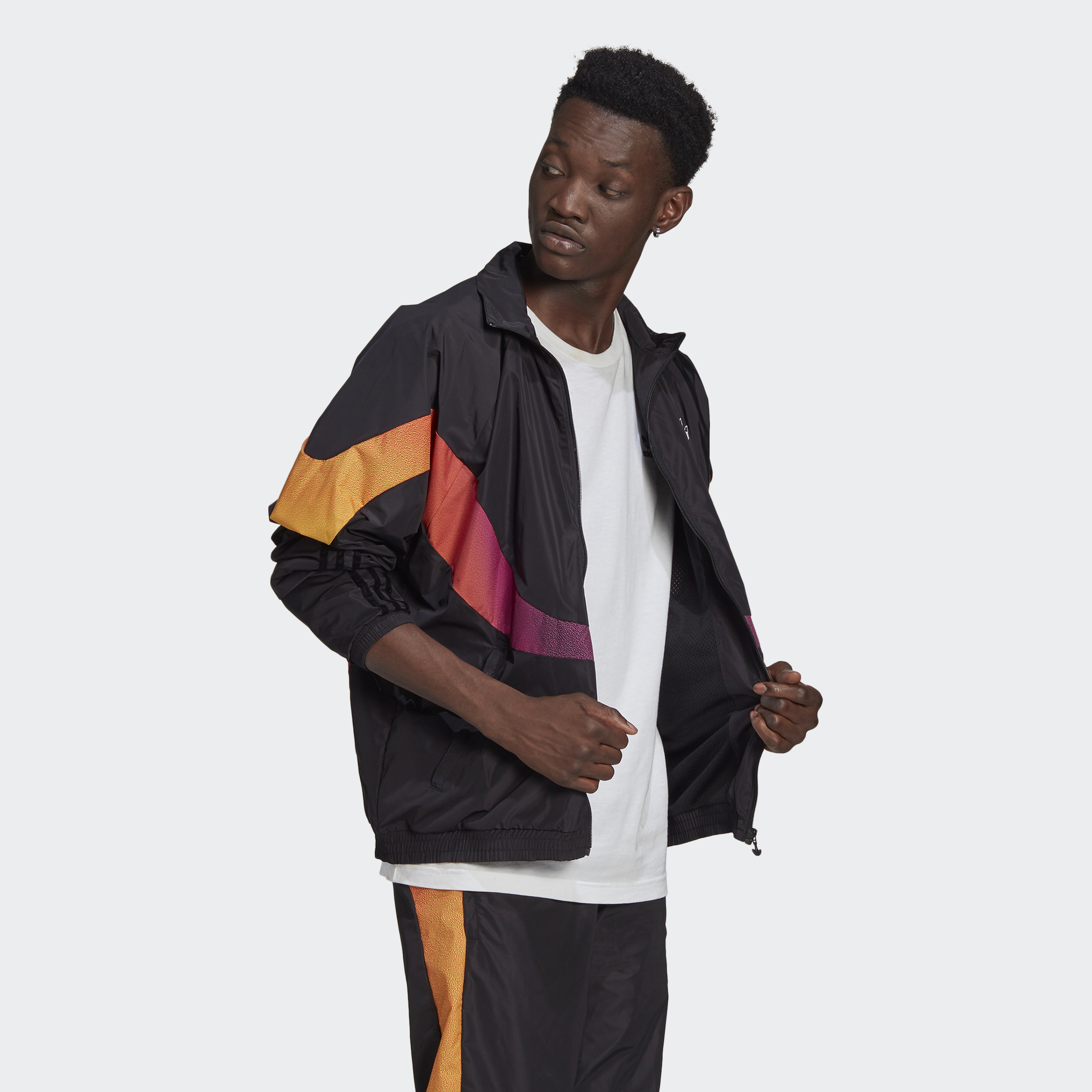 Come out on top with the winning combo of sport and total swagger. The ribbon of colours that flows around this adidas track jacket can't be missed. One, because it's bright. Two, because it's pure, undeniable steez. The loose shape layers casually. Just how you'll be chillin'. This product is made with recycled content as part of our ambition to end plastic waste.