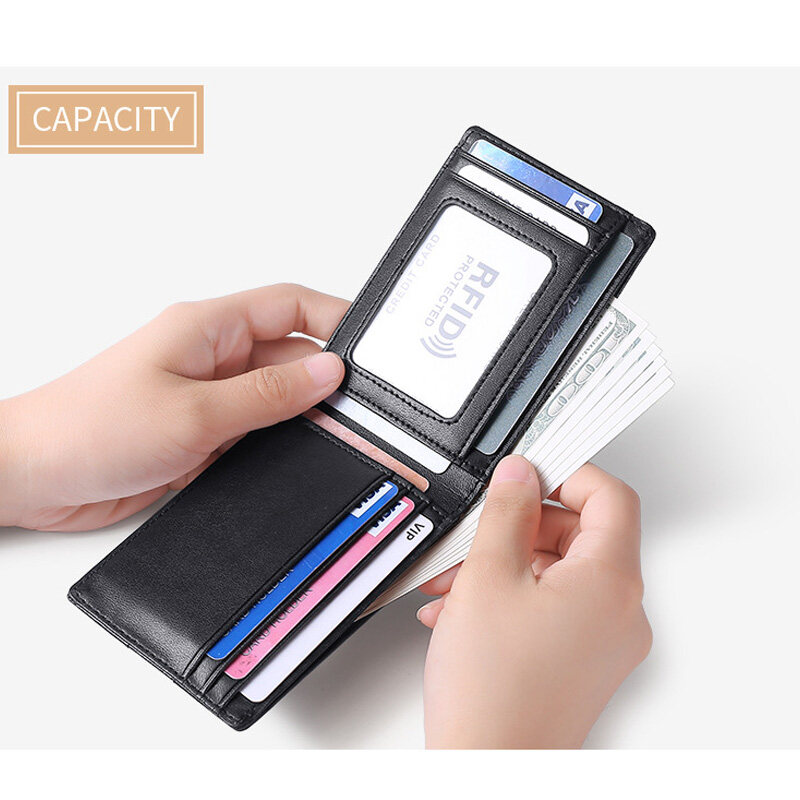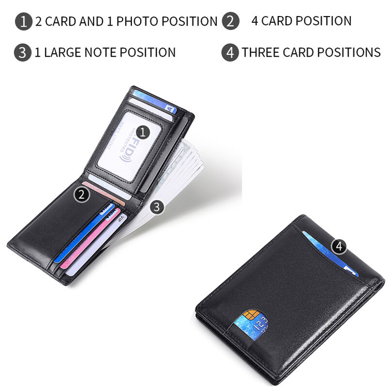 Material: genuine leather Why buy: 1. mini size, it is convenient to put in pocket. 2. advanced genuine leather, high quality. 3. RFID blocking, your money is safe.