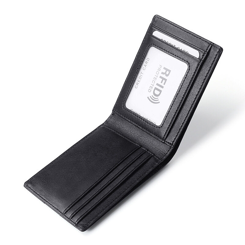 Material: genuine leather Why buy: 1. mini size, it is convenient to put in pocket. 2. advanced genuine leather, high quality. 3. RFID blocking, your money is safe.