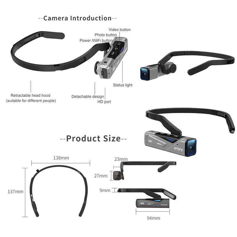 Specifications: EP7 has a prime focal distance of 30cm. Compatible with Micro SD(TF card)(supports up to 256GB) Sensor Size:1/3 inch CMOS Focal Aperture:F/No: 2.2 f=4.88mm View Angle:120° Focus Range :10cm~infinity Video Format:MP4 4K Video Code Stream:100Mbps Video Resolution :4K 60fps/30fps, 2.7K 30fps, FHD 60fps/30fps, VGA 30fps, Default 4K 30fps,HD 60fps, Image Format:JPEG Image Resolution :20M(5200*3900)/ 14M(4320*3240)/ 10M(3648*2736)/ 8M(3264*2448)/ 5M(2592*1944)/ 3M(2048*1536)/2M(1920*1080)/ 1M(1280*960), Default 8M Microphone Built in * 2 Speaker Built in * 1 Status Indicator 3pcs (power, charge, WiFi) Button Photo, video, power on/off, reset WiFi Built in USB High speed USB2.0 Battery 4.35V 1000mAh lithium battery Power Adapter Type DC5V/2A MICRO 5PIN USB Operating Temperature 0~40℃ Waterproof Level IP65 Item Size 9.4 * 2.3 * 2.7cm / 3.7 * 0.9 * 1.1inch Item Weight 78g / 2.8oz Package Size 15.5 * 15.5 * 5.5cm / 6.1 * 6.1 * 2.2inch Package Weight 360g / 12.7oz