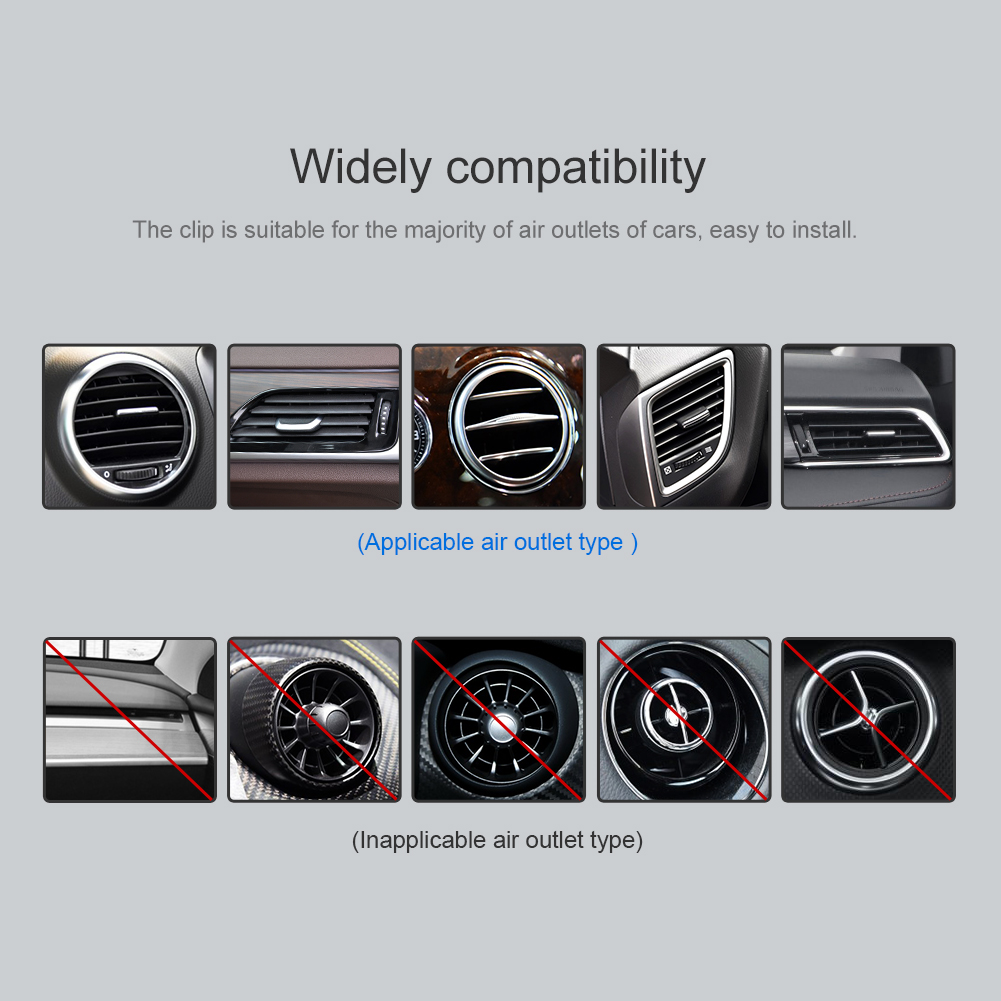 Fast Wireless Charging, Safe DrivingFor iPhone 12 & 13 Series*Note: It's suggested to use with iPhone 12 or 13 series only or with magnetic case.Do note that it can work with Android phone that support wireless charging. Just need to get a magnetic ring sticker to allow it to stick to the holder.Charge on contact - 2 in 1 function, magnetic charging and car holder. Navigation and fast wireless charging work simultaneously, one hand operation, safe driving.Strong Magnet - Ring magnets are reasonably distributed to form a closed magnetic field, gives a 900g of suction. It's very stable even in bumpy road conditions. 900g of suction is equivalent to the weight of 4 iPhone 12 Pro Max.*The closed magnetic field doesn't affect mobile signal.Intelligent Fast Wireless Charging - Intelligently adapt 7.5W fast wireless charging for iPhone 12 & 13 Series.360 degree rotation - with a 360 swivel ball, you can easily adjust different viewing angles.Stable and safe charging - The heat dissipation holes are on the back to help speed up internal air flow to keep constant temperature.Upgraded knob-type fixing clip - According to different thickness of air outlets in cars, you can adjust the clip position.Compact design - Use more integrated components to make product slim. Add soft silicone on the contact surface of the clip to protect the fan from damage.Multiple Protection - Overvoltage protection , overcurrent protection, ESD protection, short circuit protection, FODWidely compatibility - The clip is suitable for the majority of air outlets of cars, easy to install.