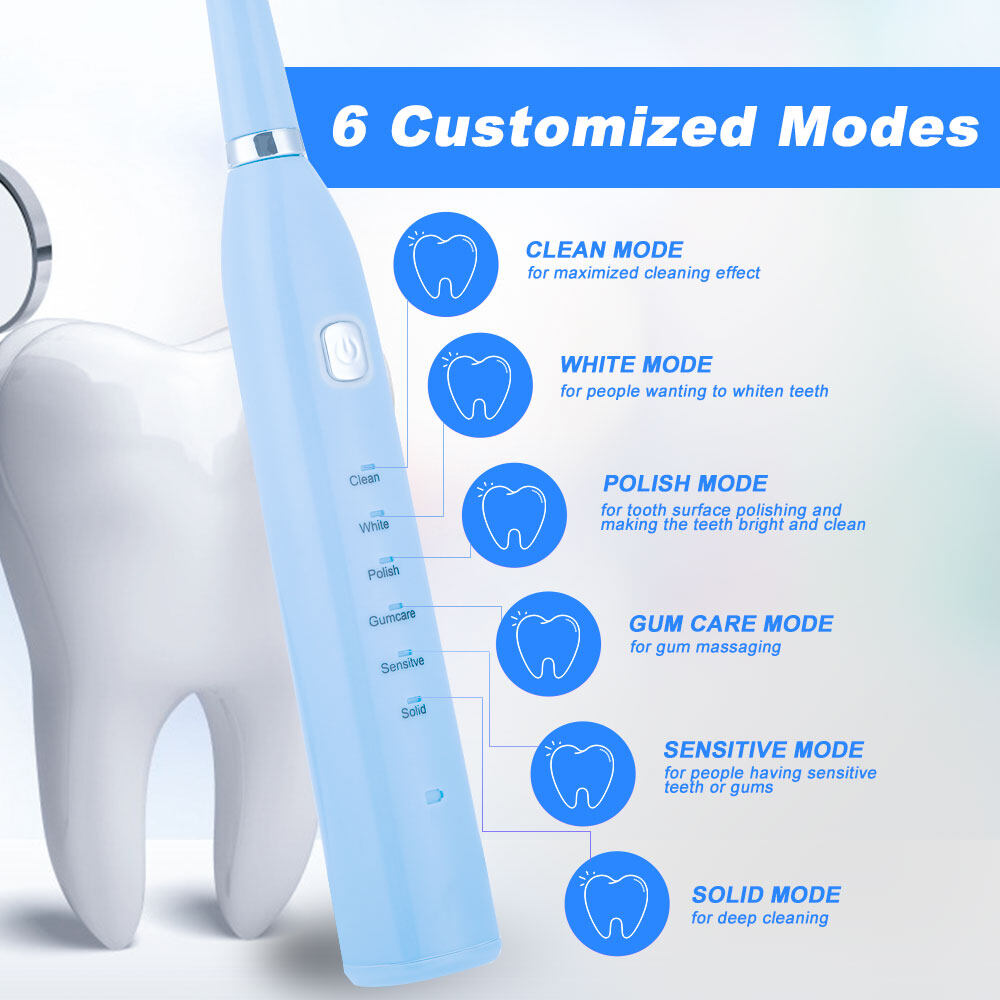 PASTSKY Electric Toothbrush Smart USB Rechargeable Tooth Brushes 6 Modes Waterproof Soft Bristles Gum Massaging for Adults Kids Teeth Cleaner