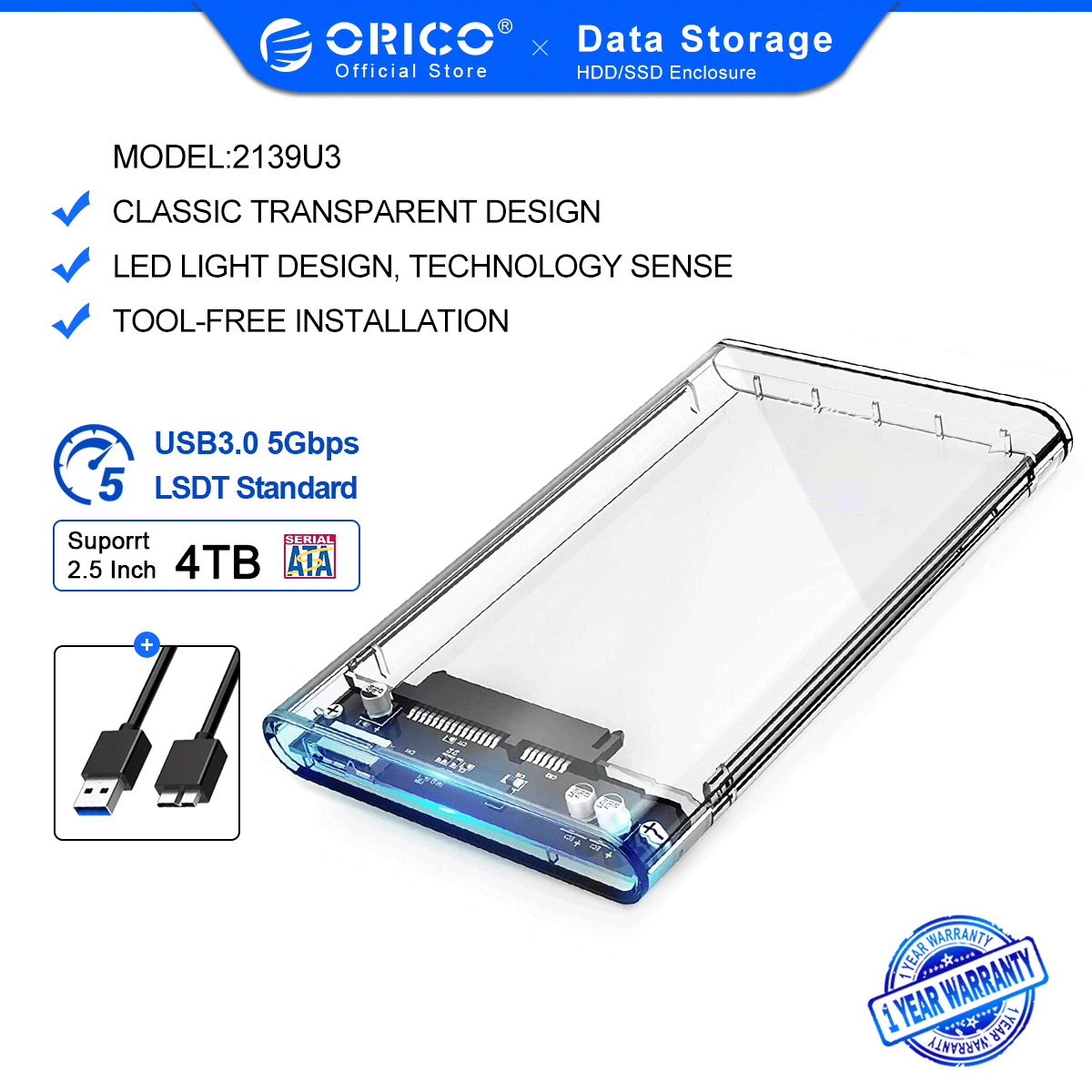 *It's a high-quality clear SSD / HDD enclosure designed and manufactured by ORICO. You can see the internal structure and hard drive status at a glance.