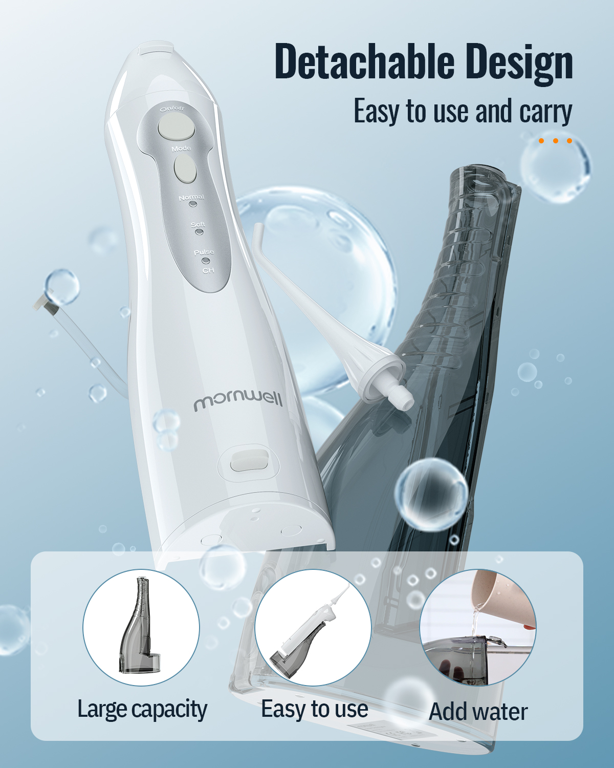 • 【100% Quality & After-sales Guarantee】Mornwell Cordless Water Flosser is Certificated by CE/FCC. If dental flosser with any quality problems, please contact us firstly, We offer replacement guarantee within 3 months.