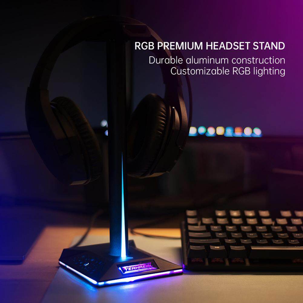 Headphones Stand Holder Universal RGB Gaming Headset Desk Bracket Over-Ear Earphone Display Shelf with 3.5mm 2 USB Ports