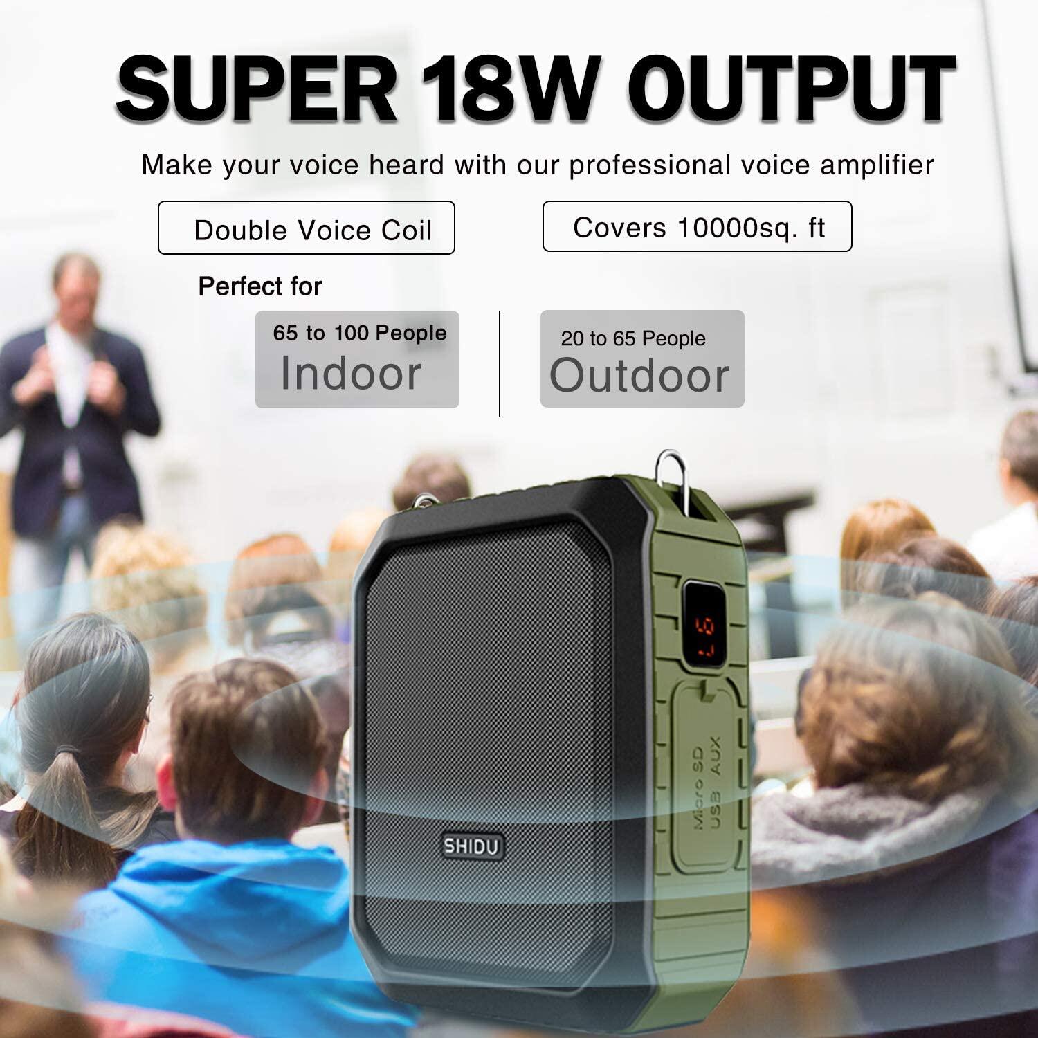 Voice Amplifier with Microphone Headset 18W Portable Bluetooth Speaker Megaphone Loudspeaker Voice Recording Clip Amp Power Bank Waterproof IPX5 for Outdoor, Shower, Teaching, Meeting, Training