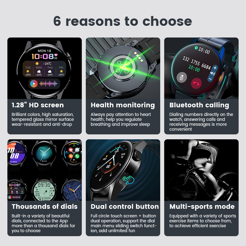 Uonevic Smartwatch Watch 3 1.28inch Full Touch Colorful Screen Bluetooth Call Long Standby Smart Watch for Men Women for IOS Android for huawei Watch 3 Pro
