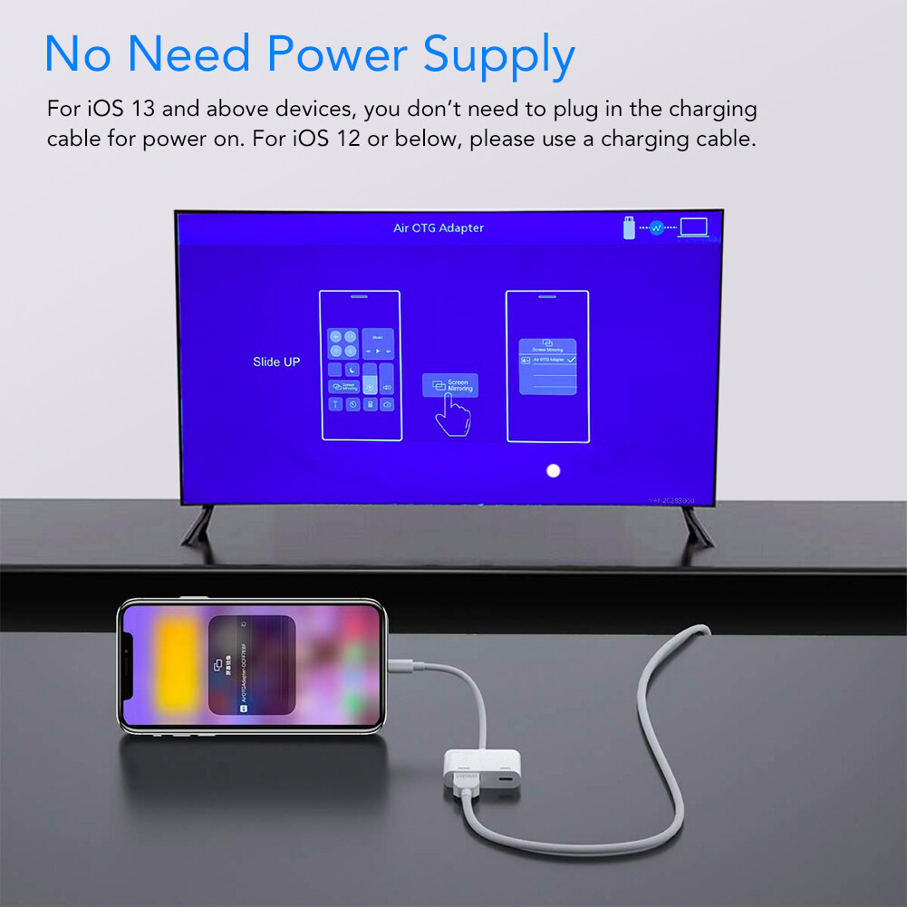 For iOS 12.5.1 or below, please connect a charging cable with min.5V1A from a wall charger for the power supply.