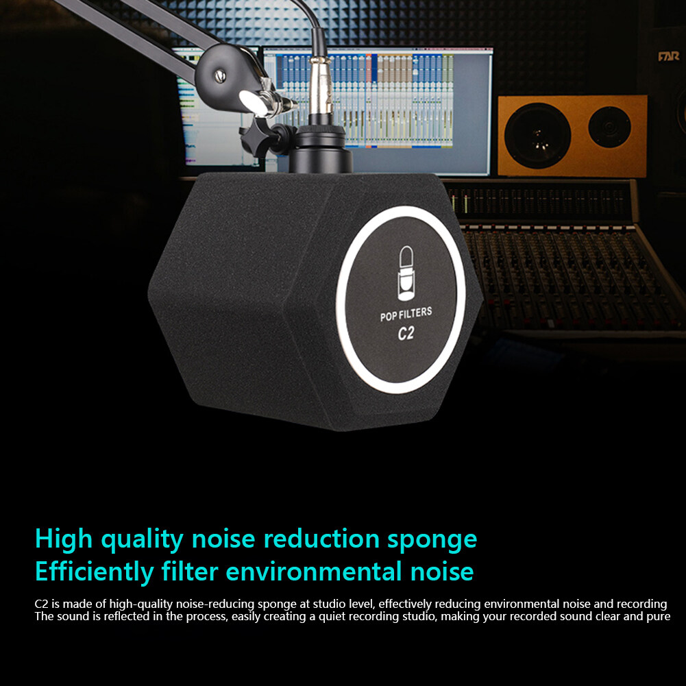 C2 Professional Studio Mic Screen Acoustic Filter Desktop Recording Microphone Noise Reduction Wind Screen