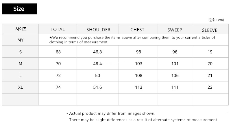 ★We recommend you purchase the items above after comparing them to your current articles of clothing in terms of measurement (inches).