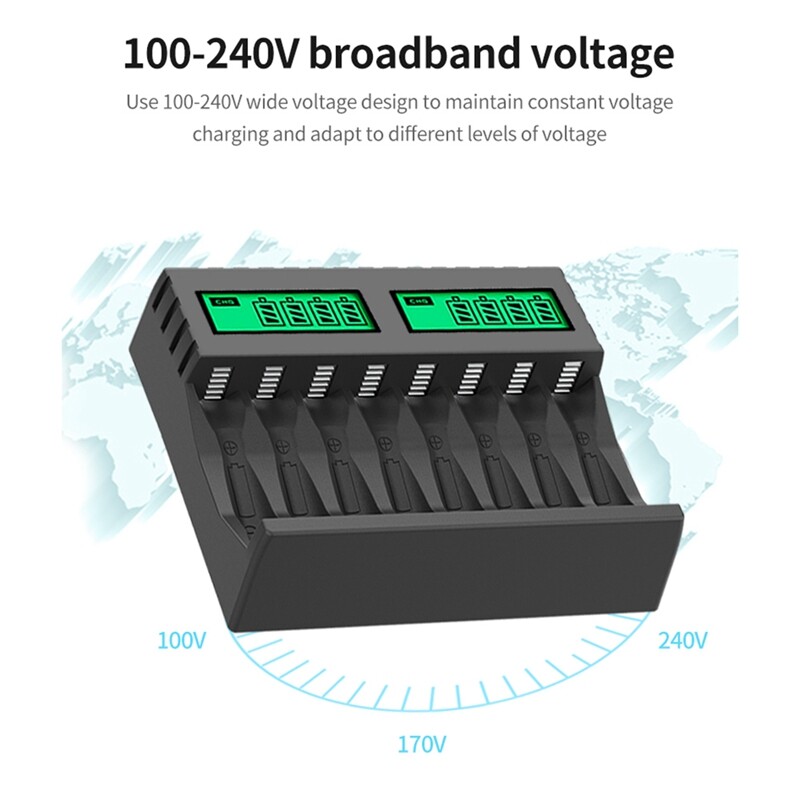 Battery Charger LCD Display Smart Intelligent 8-Slot Chargers for AA/AAA NiCd NiMh Rechargeable Batteries AA AAA Charger