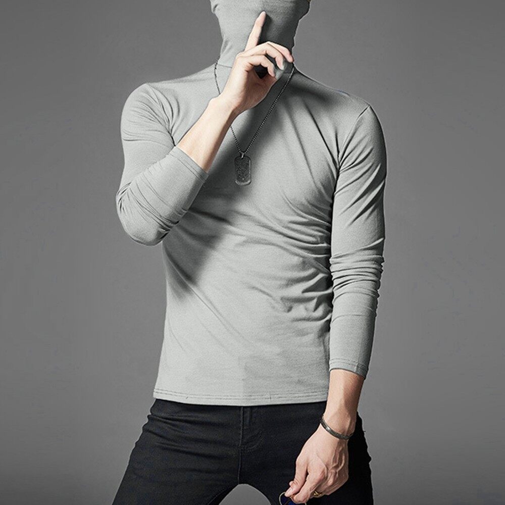 * Item Description: Men's Casual Slim Turtleneck Long Sleeve Tops Pullover T-Shirt Solid Color